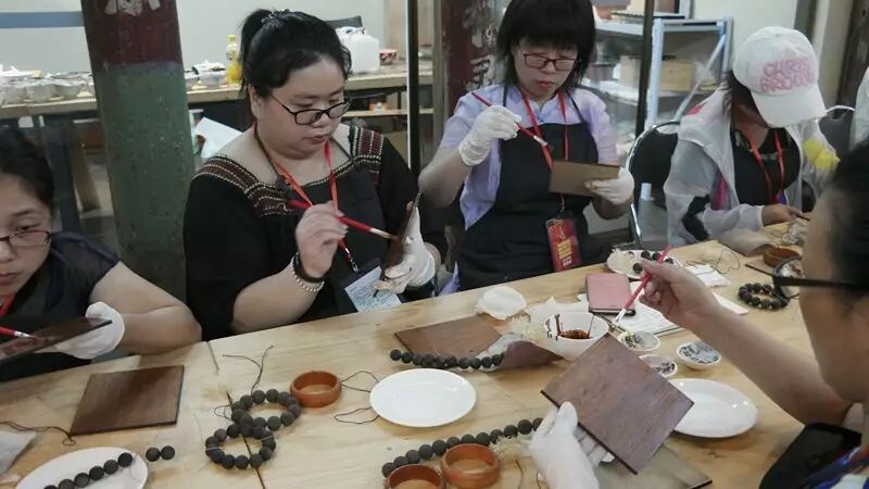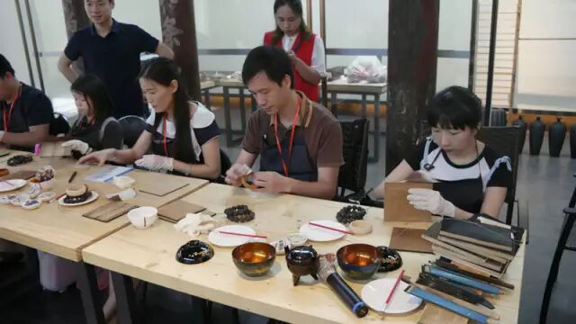 福州市漆艺术研究院副院长阮界望教授带领零基础的学员们走入漆器千文万华的世界,了解大漆的前世今生。