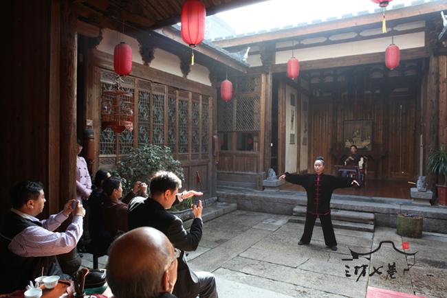 太极拳、七星剑、逍遥扇,和着轻柔的音乐……14日上午,中国武当道教功夫团成员的精彩表演,赢得了到场游客的阵阵掌声。来自台湾的一位观众说,练太极拳可以修身养性,太极拳的刚柔并济,对性格的塑造也会起到积极作用,虽然平时自己也经常练太极拳,但练十遍也不及看名家演练一遍。