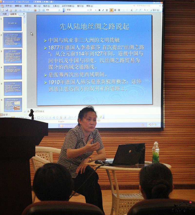 2014年6月10日晚,三坊七巷景区在南后街75号馆举办海上丝绸之路知识讲座,景区讲解员、志愿者及公司其它部门员工共计30人参加学习。本次讲座的主讲人单南老师是景区志愿者团队的一员,同时也是近期在京举办的“海上丝绸之路文物特展”讲解团的成员之一。在本次讲座中单南老师结合三坊七巷景区福船文化馆陈列的相关内容,以时间为脉络,深入浅出的为大家介绍了从远古到秦汉时期、从两晋到唐五代时期、宋元时期和明清时期海上丝绸之路的形成、发展、繁荣和转型的过程,在讲座过程中大家认真聆听做好笔记,培训结束后互相交流,纷纷表示通过讲座丰富了知识,开拓了视野,并且认识到福州作为海上丝绸之路港口城市发挥的重要作用。