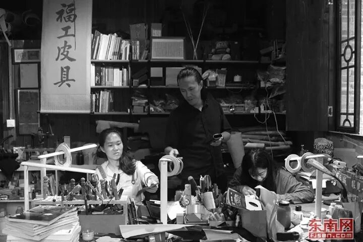 在福州三坊七巷光禄坊路上,福工皮具制作所就是何巍工作所在地。小蔡是何巍招收学徒,她对皮具制作很喜欢,感兴趣,所以就来学了。