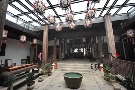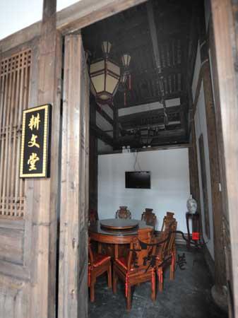 “看是挺好看,可是在哪儿吃饭呢?”一位游客问道。客栈工作人员说,为了不影响古民居的品位,大厅里摆不了餐桌,大厅两侧前后16间厢房改成了16间包厢。记者探头一看,厢房里果然摆着仿古桌椅,餐具都是青花瓷的。