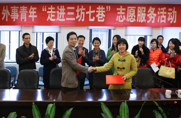 为响应省市共建省会文明城市的号召,发挥外事资源优势,提升三坊七巷旅游资源对外影响力,3月15日,三坊七巷管委会旅游部与省外事办团委签署共建协议。双方将本着共建合作,共同发展的原则,实现“优势互补、资源共享、取长补短、共同提高”,促进共建双方在工作上有新的突破和提高。