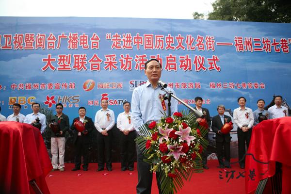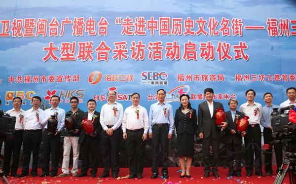 21日上午,闽台港澳卫视暨闽台广播电台“走进中国历史文化名街——三坊七巷”大型采访活动在三坊七巷举行启动仪式。省委常委、宣传部长袁荣祥,福建省委宣传部副部长、省委外宣办主任,市委常委、副市长、宣传部长朱华,福建广播电集团领导,台湾东森电视台副总经理陈立元,香港卫视董事局特别助理刘晏平,印尼中文台总监武毅,海峡卫视总监,东南广播公司总监等共同为启动仪式揭幕。两岸四地广播电视媒体将通过集中采访、体验报道、录音专题采访、主持人现场连线等形式走进三坊七巷。该活动由福州市委宣传部、海峡卫视、东南广播公司和福州三坊七巷管委会共同主办,由台湾东森电视台、香港卫视、印尼中文台、以及台湾“旅游我最大”联播网26家电台共同承办。