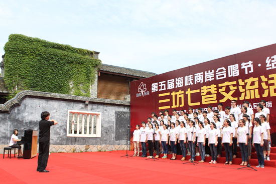 第五届海峡两岸合唱节于本月15日至20日在福州举行,来自两岸的27支合唱团队(其中台湾合唱队伍10支)逾1500人参加该活动。17日下午,两岸合唱团队走进三坊七巷,举行“结缘坊巷”活动,在光禄呤台载歌载舞,激情演唱。