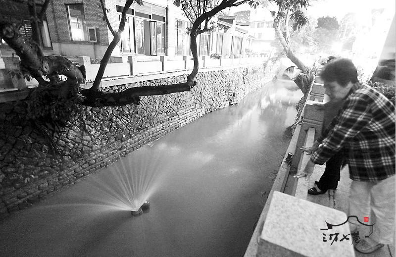 昨日,安泰河澳门路至通湖路段,7个蓝色的水泵正源源不断喷水,将整个内河景观变得“活起来”,吸引不少市民驻足欣赏。据悉,这种水泵可24小时不停进行循环喷水工作,起到活水制氧的作用。