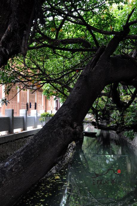 福州的三坊七巷,人杰地灵,出将入相。坊巷周围有条细窄的安泰河静静地流淌,沿河种植了许多榕树,须长叶茂,绿荫如盖,过去河上船来舶往,古人有“百货随潮船入市,万家沽酒户垂帘”句,描述沿河风光和运输盛况。闽菜老字号安泰楼就坐落在河畔。唐朝天复初年,安泰河两岸就已经人烟稠密,河中船只如云,两岸酒市歌楼,笙歌从柳荫榕叶中出。后人把这里比作金陵的秦淮河。“七巷三坊记旧游,晚凉声唱卖花柔,紫菱丹荔黄皮果,一路香风引酒楼“。清刘心香的诗句表达的正是当时这方土地的市井生活。枕河人家隔窗相望,青年男女互投信物。一出闽剧“荔枝换绛桃”演绎的正是这种烂漫而凄美的爱情故事。随遇而安,知足常乐。老福州的三坊七巷在安泰河的臂弯中,是那么安详淡定。