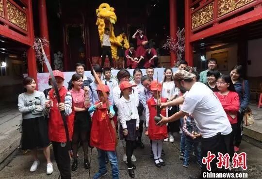 青年队员们体验传统射艺竞技活动,乐融融。