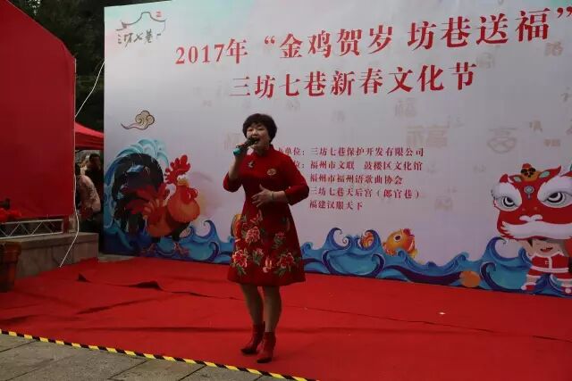 “添花添牡丹,添花添幸福。喜娘唱得佳人玫瑰开,唱得富贵牡丹开”。正月初二,是春节民俗中回娘家的喜庆日子,喜娘文化也是极具福州当地民俗特色的婚庆文化之一,其中的喝彩,那可是喜庆又热闹。三坊七巷特别邀请福州喜娘喝唱团,今天上午在光禄吟台为游客和市民朋友,带来福州市喜娘喝唱团自行创作与编排的歌舞和新春喝彩表演。
