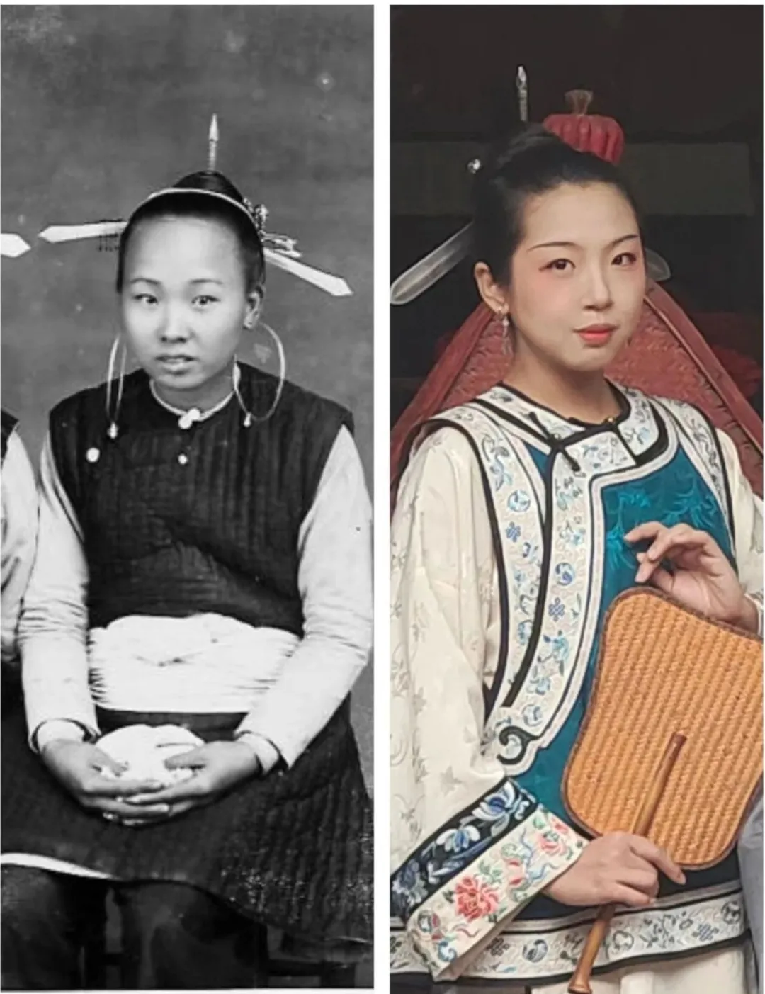 由于历史原因,曾在福州一带广为流行的“三把刀”造型一度被禁止,致使这一独特的地方妆束渐渐被人们淡忘。直到不久前,经汉服妆造师黄秋辉及其团队的研究复刻,“福州传统妆束技艺”列入鼓楼区第七批非物质文化遗产项目,尘封已久的“三把刀”造型才得以“重现江湖”。