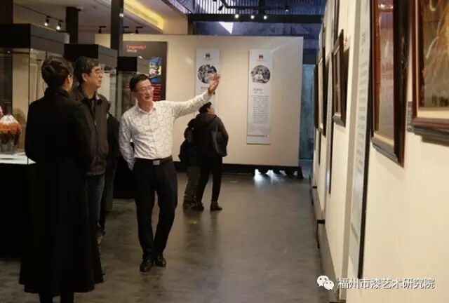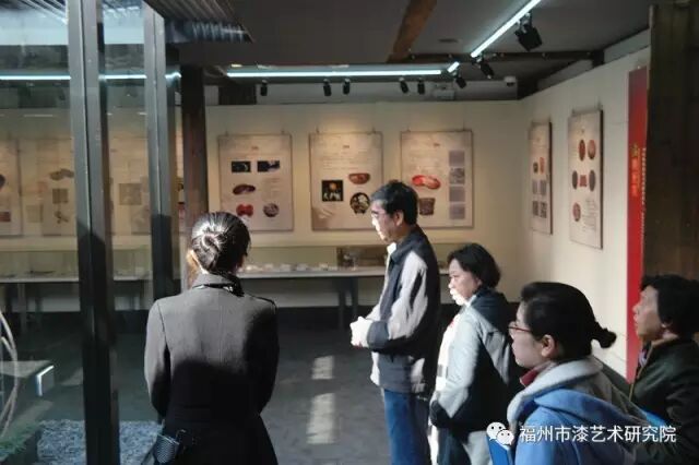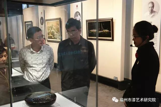 2月7日上午,闽都文化研究会副会长陈伙金莅临朱紫坊福州市漆艺术研究院,参观正在展出的“漆悦·福泽”福州漆艺回顾展。福州市漆艺术研究院副院长翁纪阳,福州市三坊七巷保护开发有限公司财务顾问王冀榕陪同参观展览。