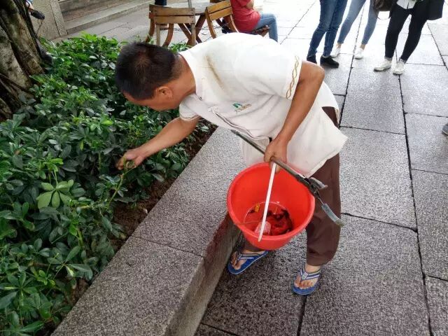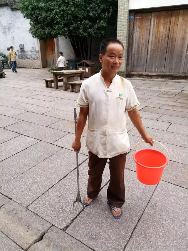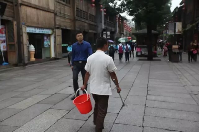 但是,还在小编积极的寻觅下,用镜头捕捉到了皮肤黝黑,瘦小身板,衣着朴实的三坊七巷保洁员唐正江。