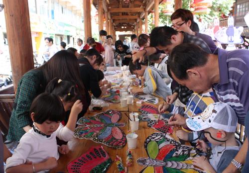 10月5日,三坊七巷风雨廊举办了一场纸鸢传统技艺展示活动,大人们带着小孩体验纸鸢DIY的乐趣。活动中,孩子们在父母的指导下,认真临摹绘图,然后涂上缤纷的色彩,一个个精美的纸鸢陆续诞生。相比平日里购买来的纸鸢而言,自己亲手绘制的纸鸢让他们感到了更多的快乐和成就。