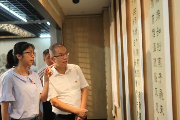 三坊七巷讲解员向领导嘉宾介绍参展作品