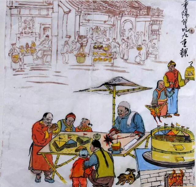 旧时,每块九重粿还会插上彩色的小旗,用来吸引小孩子的注意。老福州人登高前,都会买点九层粿,边吃边登高。
