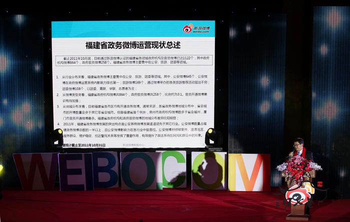 2012年1月7日,由新浪微博、新浪福建举办的“2011福建微博盛典”在福州举行。福建省直机关党工委常务副书记朱清,福建省委宣传部部务委员、省委外宣办网络办常务副主任卢承圣、福州市委宣传部副部长、三坊七巷保护开发有限公司总经理林矗等领导出席此次盛典。同时,来自福建全省的各政府机构、媒体、知名企业的相关领导及草根微博代表也出席了此次盛典。