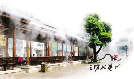 炎炎夏日,南后街的行道树和风雨廊上,启用了水雾降温系统,每隔5分钟自动进行喷洒,从天而降的雾气弥漫着坊巷古街。让前来逛三坊七巷的游客感受到丝丝清凉的同时,还为古民居制造了神秘的特效、宛如仙境!