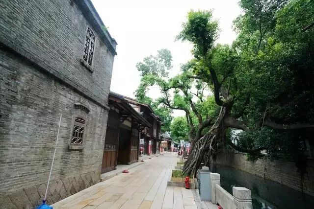 沿河古榕垂髯,明、清民居鳞次栉比。