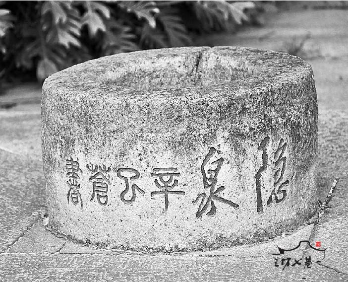 隐泉水井的井身为砖构,井栏用整块花岗石凿为圈状,口径约42厘米,外壁阴刻:“隐泉。辛巳苍书。”正文行草,旁款篆书(图三)。