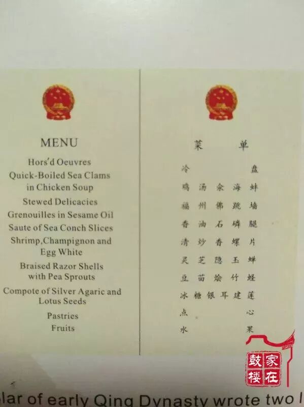 菜单上除了福州佛跳墙,还有著名的福州名菜鸡汤汆海蚌、香油石磷腿等。