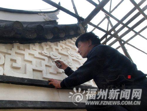 盛国先的灰塑才能再次得以展现。5年里,盛国先每天穿行于白墙黑瓦之间,常常一干就是一整天。5年下来,他修复或重建了林聪彝故居、林觉民冰心故居、林则徐纪念馆、谢家祠、刘家大院、王麒故居、水榭戏台、小黄楼等百年老宅的灰塑,这些全部是国家级文保单位。