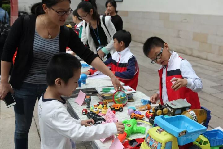 当天上午,三坊七巷光禄吟台早早就热闹起来,参加“三坊七巷萌市集”活动的福晚小记者们摆摊来啦!大家带来了自己多余的小玩具、小书本、小衣服,还有亲手制作的手工作品。