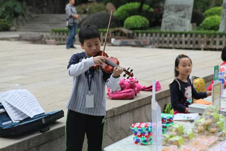 “墨墨杂货铺”前,小摊主郑以墨高声吆喝:“走过路过,千万不要错过。”有模有样地做起了生意。刚开始看到自家摊位人气不足,郑以墨转身拿出准备好的小提琴,拉了一段乐曲吸引游客。郑以墨妈妈介绍:“小朋友带来了自己的手工作品塑料串珠杯垫,其他小点心是大人帮忙制作的,主要是鼓励孩子参加这种社会活动。”