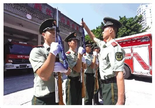 除了日常的国旗护卫工作之外,三坊七巷消防中队还担负着这里4.78平方公里的古建筑群及周边地区的防火巡查、灭火救援、执勤保卫、宣传培训、礼仪勤务等任务。