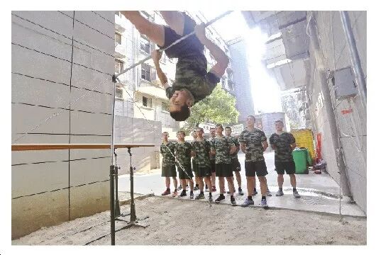 身绑7公斤的沙袋练踢腿,用标尺量步幅,用秒表卡步速;每天在枪托下吊上20斤重的砖块练臂力,腋下夹上扑克牌练定位。日复一日,年复一年,平均每天5个小时以上的军姿训练,让这群小伙子踢正五一广场上那128步,踢准那短短的2分07秒,将国旗升上朝霞渐出的苍穹。