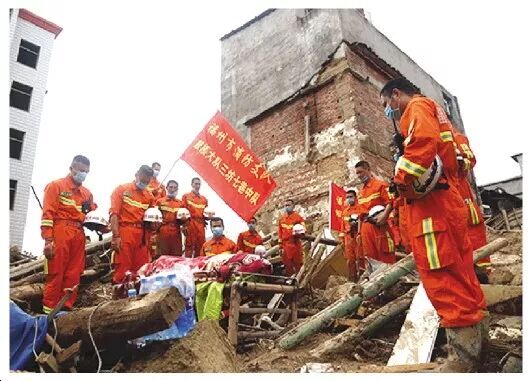 三坊七巷中队消防队员在台风洪涝灾区救援。