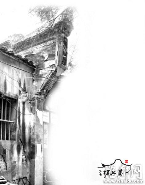 萨镇冰故居大门的檐角,被杂草缠绕着