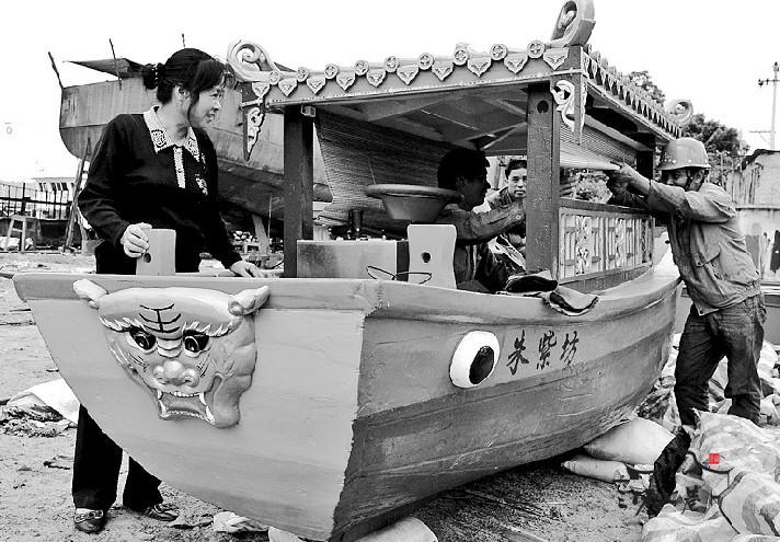 “船的大小是根据安泰河设计的。”木工老方介绍,安泰河河道宽6米,最低的桥是老佛殿古桥。退潮时,水面到桥底1.5米;正常水位时,水面距离桥底1.2米。因此,“只能通行1米多高的船,河道只能容4米多长的船调头,两船不能并排行驶。”老方说。