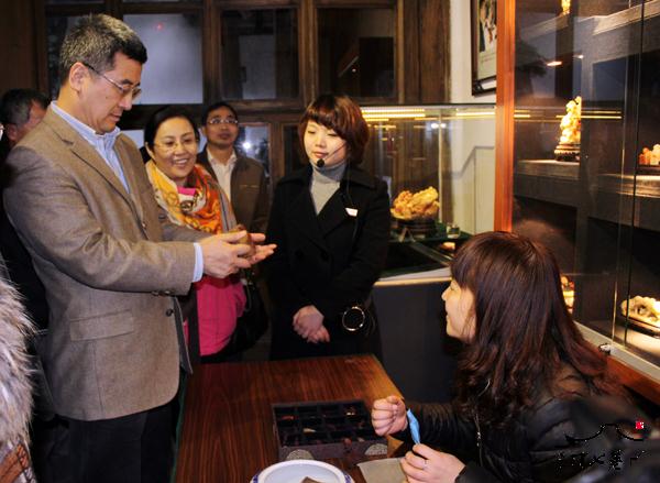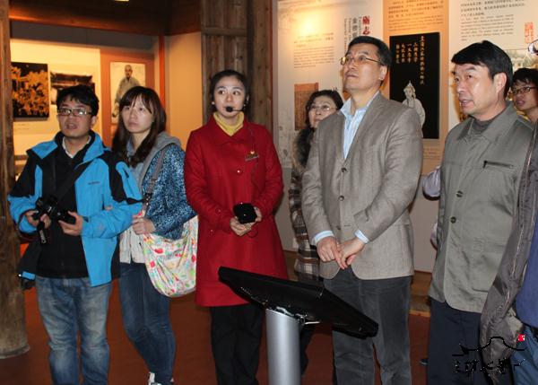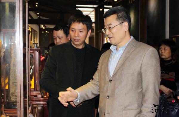 2月13日,香港大公报总编辑贾西平一行考察三坊七巷。 贾西平一行先后参观了小黄楼、水榭戏台、叶氏民居、中国近现代名人文献手迹珍品展、沉香木雕艺术展等地。每到一处,贾西平都仔细聆听讲解员的解说,详细了解三坊七巷的建筑特色和人文景观,对三坊七巷深厚的人文底蕴赞不绝口。三坊七巷保护开发有限公司总经理林矗、三坊七巷管委会常务副主任杨勇陪同考察。