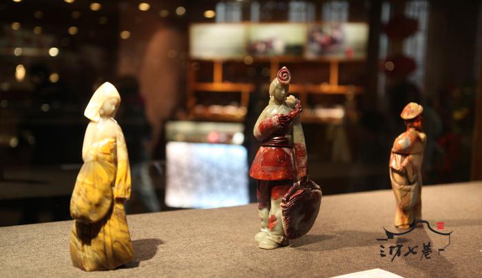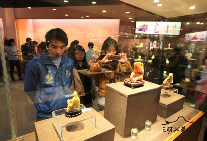 1月1日上午,三坊七巷雕刻艺术馆正在举行的福建省工艺美术大师黄忠忠、黄丽娟寿山石雕作品展吸引了来自五湖四海的游客,几十件各具特色的寿山石雕精品让观众感受到了福州寿山石文化的巨大魅力。