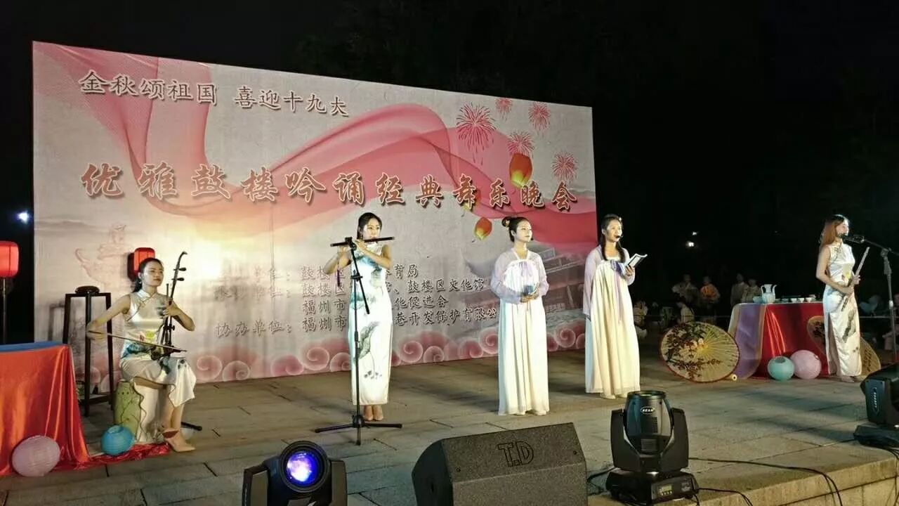 22日晚,“金秋颂祖国 喜迎十九大——优雅鼓楼 吟诵经典舞乐晚会”在三坊七巷光禄吟精彩演绎。该活动由鼓楼区文化体育局主办,鼓楼区博物馆、鼓楼区文化馆、福州市传统文化促进会承办,福州市三坊七巷开发保护有限公司协办。