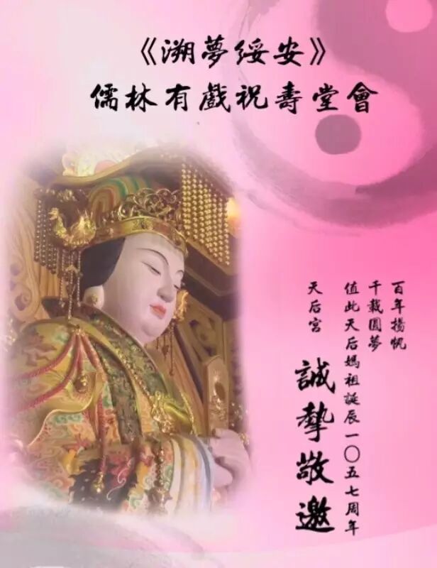 祝寿堂会:三月廿三(4月19日星期三)20:00天后宫戏台