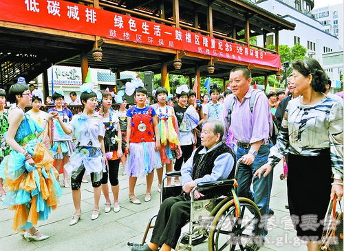 旧报纸、饮料瓶、宣传单……昨天,在南后街风雨廊前,看到一群中学生穿着用这些废品做成的美丽衣裳,市民们都惊叹不已。这是鼓楼区环保局和区环保协会举行的“6·5”世界环境日宣传活动。