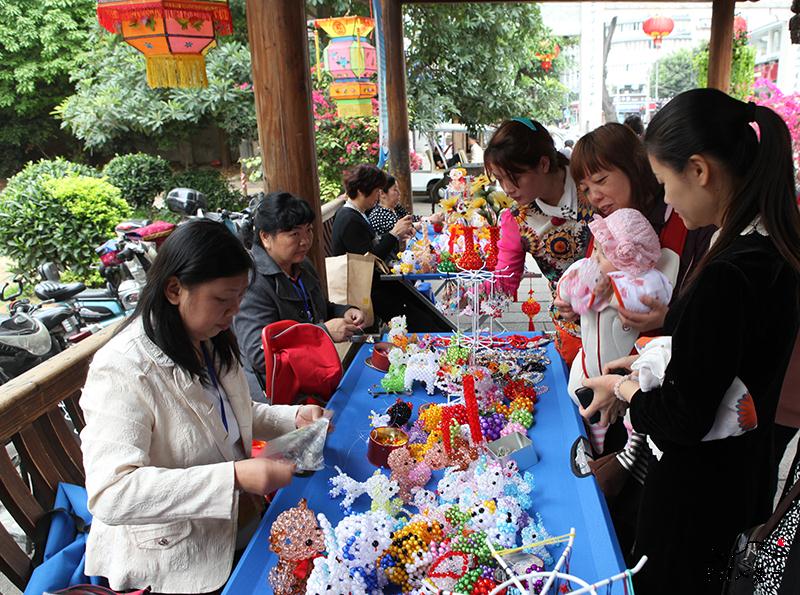福州自强手工互助社的成员们带来了他们精心制作的工艺品,吸引了众多游客。