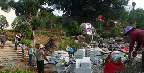 9日,乌山北入口景观广场施工现场一片繁忙,广场大理石地面铺设已经展开,周边的园林绿化和造景工程也在加紧施工中(如图)。据介绍,乌山北入口景观广场将赶在“5·18”正式向游客开放。