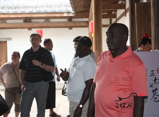 4月24日下午,三坊七巷参观者络绎不绝,还迎来了一群金发碧眼的外国友人,他们东看看西瞅瞅,觉得福州的很多景致都很新鲜。在三坊七巷,他们吃了福州名小吃鱼丸、肉燕,又到水榭戏台看了民乐表演。老外们纷纷竖起大拇指,赞美福州是座保留了许多传统文化的城市。