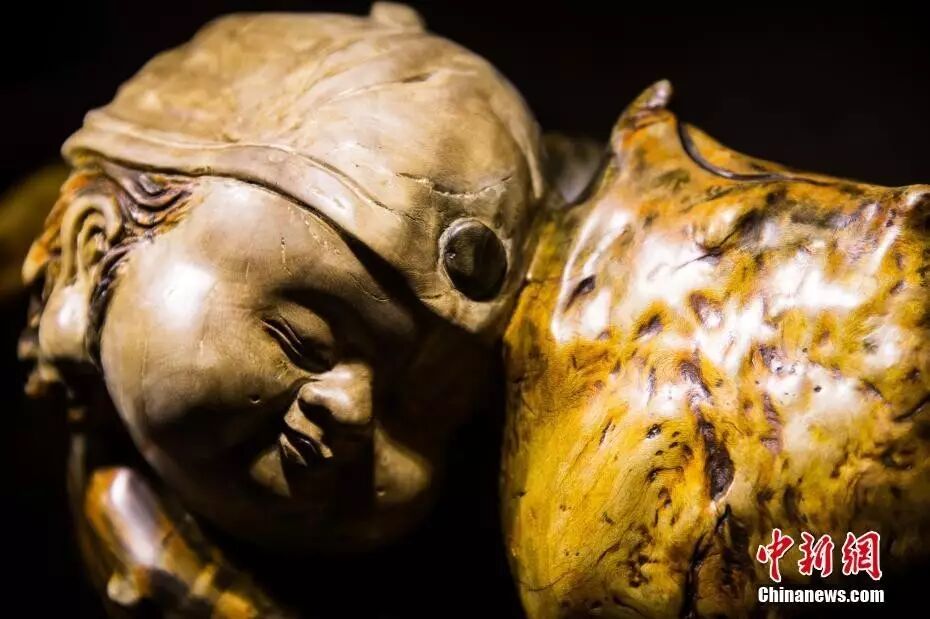 榉木材质作品《仙童献寿》。