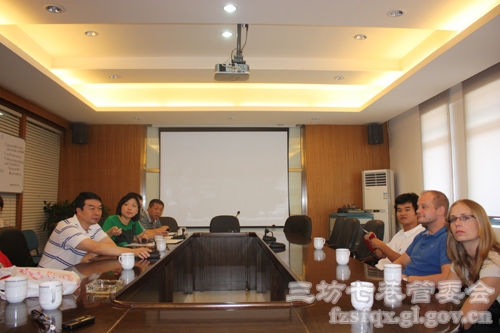 7月28日上午,容宝古董家具第三代传人Jan Rombouts一行赴三坊七巷管委会商谈古董家具展出事宜,管委会主任林飞、常务副主任、总经理林矗热情的接待了他们。席间,Jan Rombouts对福州的氛围很满意,感叹比北京都好,几个随行的台湾人也表示希望能够来三坊七巷办展。随后他们到三坊七巷林则徐纪念馆、林聪彝故居等地进行参观。在参观过程中,Jan Rombouts表示:“政府拿这么多钱出来进行修护,很有意义,在中国来说没有几例;故居建筑文物保护的这么完整也着实让我大吃一惊。”