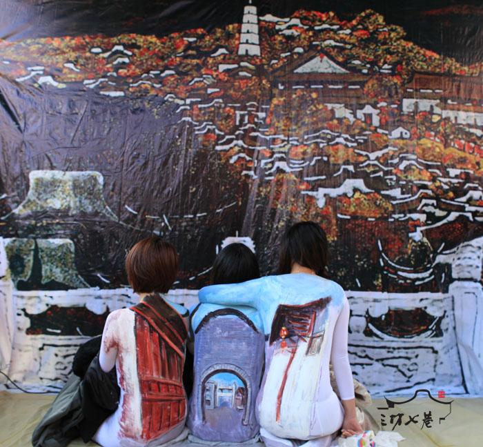 图腾坊巷彩绘人生元旦迎新3d地画展示,1-3日,一项与上帝争宠的艺术—3D人体彩绘,给了人们无限的想象空间,以三坊七巷的建筑及森林之王来绘制,突出文化和艺术气息的图案分别展示于模特身上,给游客们视觉和心灵上一次强大的冲击力。