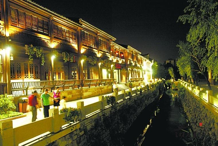 安泰河澳门桥至通湖路继沿岸绿化提升、引进观赏鱼及喷泉增氧后,三坊七巷管委会又实施另一项景观改造工程——夜景灯光工程。
