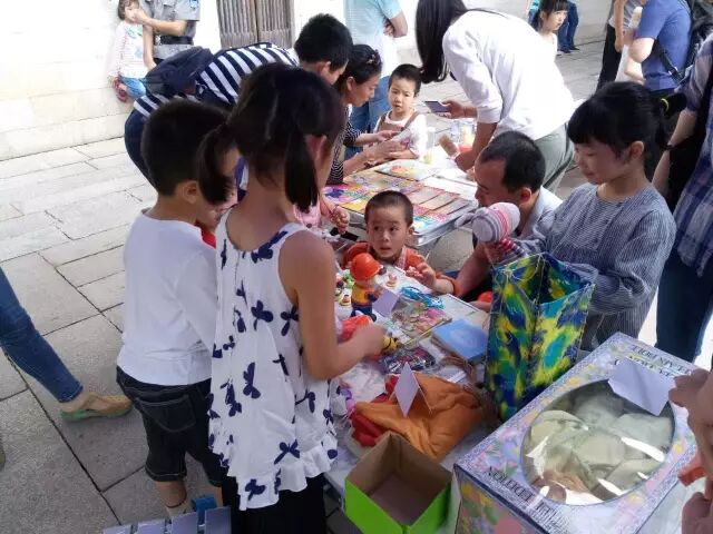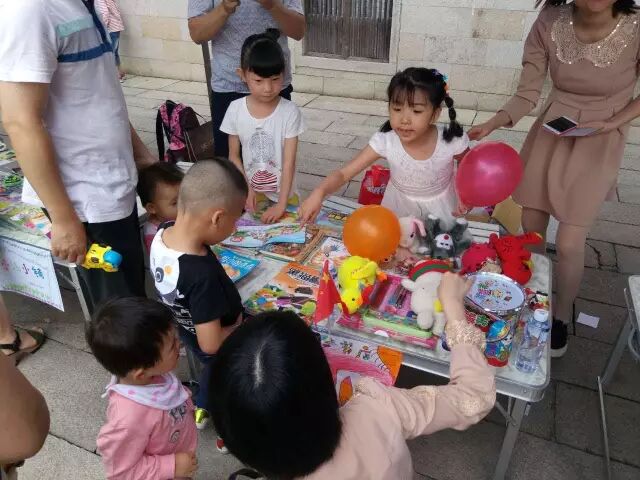 今天早上,三坊七巷光禄吟台来了一群花巷幼儿园的萌娃,参加“三坊七巷萌市集”之“5·20花巷幼儿园专场”活动。活动以家庭为单位,以萌娃为主角,将他们多余的小玩具、小书本、小衣服,还有自己的手工作品,一起集合“摆摊”。