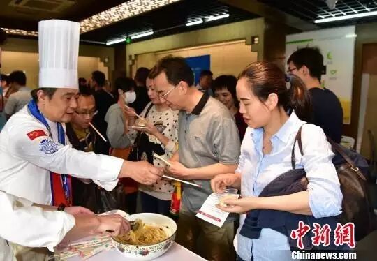 来自台湾的法国蓝带美食勋章的大厨张志颖先生,现场带来了手工面,并亲自送给游客们食用。现场围满了游客,“我的孩子很喜欢”,现场一游客表示。