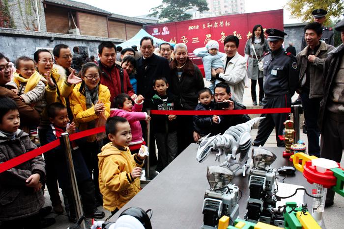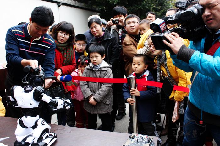 3日上午,三坊七巷光禄呤台的小长桌上摆满了玩具机器人。这些机器人不但可以按遥控指示来完成舞步,在跳舞过程中腿步的扬声器更可以带来立体的音乐。小跳舞人虽小,但当它扭动着身躯、努力踩着脚底舞动时,在场的小朋友也跟随着它们一起跳起舞来,一同沉浸在这欢乐的氛围中。