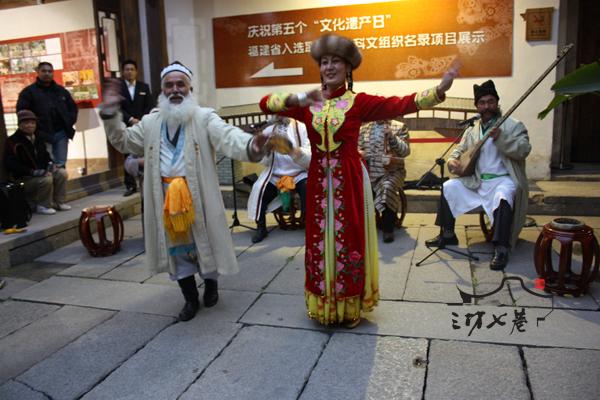 元旦假期的最后一天,叶氏民居延长了开放时间,并请来新疆维吾尔族的原住民,为游客献上“新疆维吾尔木卡姆艺术”。