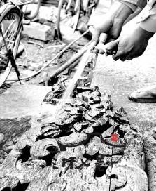 一块巴掌大的三角形杉木块,在数把不同模样的刻刀下转来转去,“变”出了“花开富贵”的雕花小件。昨日上午,记者在福州三坊七巷安民巷鄢家花厅对面的宅院内,见到了“下刀如有神”的木雕工人。