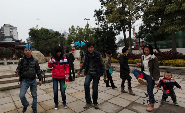 我国古代汉语中常用“游”“戏”“邀”“嬉”等来指代游戏,本义都与动作或运动有关,特点是“逸”,是一种轻松自在的活动。大年初四上午,“传统竞技游园活动”在安泰河公园举行,展示“滚铁环”“踢毽子”“打陀螺”等伴随几代人度过童年的游戏。