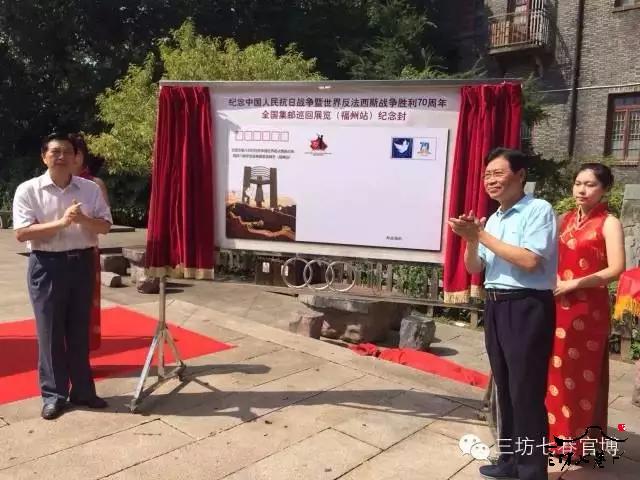 3日,《中国人民抗日战争即世界反法西斯战争胜利70周年》纪念邮票首发式暨全国巡展(福州站)首发仪式在三坊七巷光禄吟台隆重举办。集邮巡展在南后街宗陶斋举行,将历时3天,欢迎市民参观。 本次中国邮政9月3日发行的《中国人民抗日战争即世界反法西斯战争胜利70周年》纪念邮票,一套13枚加小型张1枚,全面反映中国人民艰苦的抗战史迹,以各抗战纪念馆为主题画面。